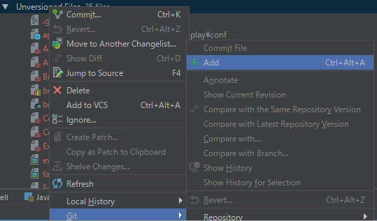 6. Unversioned Filesが大量に出てくるので"Add"する。