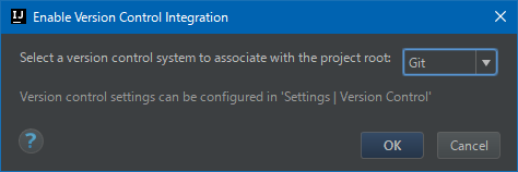 - 「VCS」→「Enable Version Control Integration...」を選択